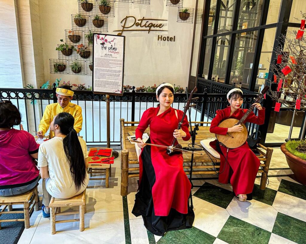 Không chỉ dừng lại ở không gian chợ Tết xưa rộn ràng, khách sạn Potique còn gửi gắm tinh thần Tết đoàn viên qua chuỗi hoạt động trải nghiệm miễn phí dành riêng cho khách lưu trú. Từ lớp học làm bánh, làm mứt truyền thống, đến múa lân, xin chữ thư pháp đầu năm, mỗi hoạt động đều góp phần tạo nên những khoảnh khắc sum vầy đáng nhớ cho du khách trong dịp Tết Bính Ngọ 2026. Đặc biệt, các hoạt động thủ công sáng tạo được tổ chức định kỳ cho trẻ em như tô tượng, đất nặn giúp kỳ nghỉ của các gia đình thêm trọn vẹn và ý nghĩa.
